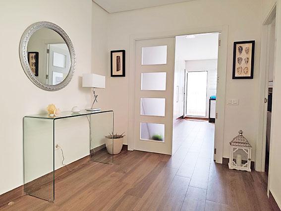 Vivienda hecha con mucho gusto, muy luminosa y acabados de primera calidad: suelo porcelánico imitación madera, ventanas oscilo batientes en PVC blanco, en la cocina con rejas y en las habitaciones con mallorquinas, puertas macizas lacadas en blanco, ladrillo aislante del 11, descalcificador, las 3 puertas de entrada a la vivienda acorazadas, video-portero, radiadores eléctricos en las habitaciones y aire acondicionado de split en comedor y habitación principal.