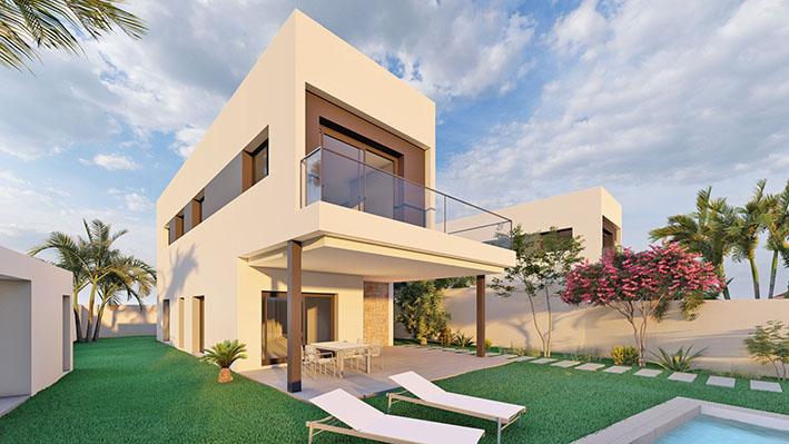 Chalet single family in Calicanto Sto Domingo, with 200 m² built, 160 m² living area, 558 m² plot sq.meters, 4 bedrooms, 4 bathrooms, new, outward, 3 cupboards, 2 terraces, 16 m² of terrace, kitchen breakfast nook, private pool, 2 floors, hot water centralized, utilities connected, accepts animals